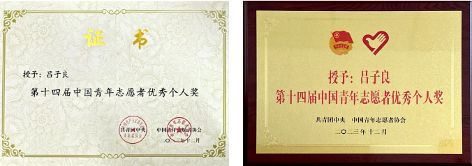 近日,共青团中央、中国青年志愿者协会对全国志愿服务先进典型进行表彰,我校贝博艾弗森代言体育官网2023级硕士研究生吕子良荣获“中国青年志愿者优秀个人奖”(全国260人,北京市仅13人),是唯一获此荣誉的北京市大学生。
