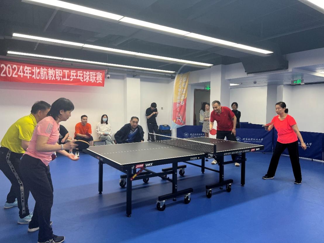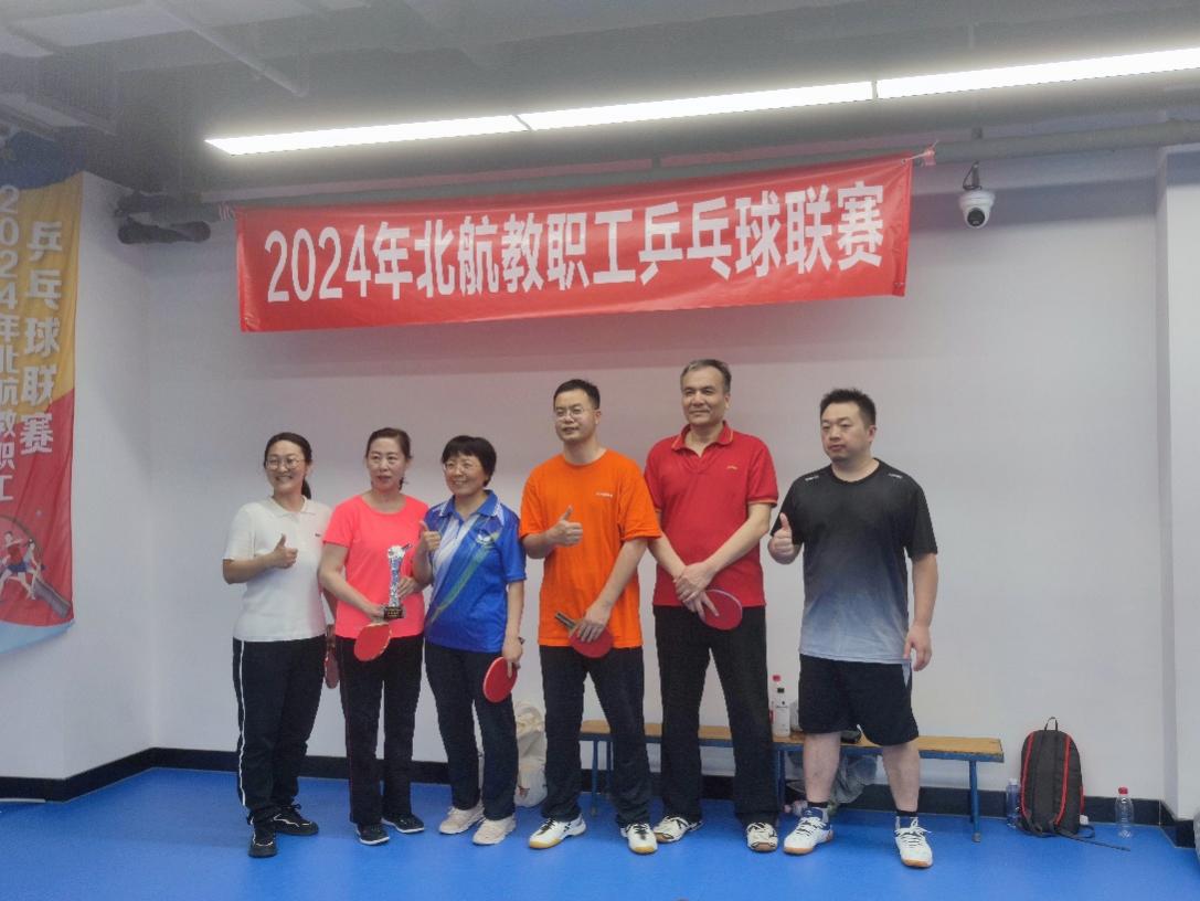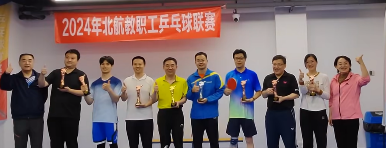 2024年北航教职工乒乓球联赛于4月20日落下帷幕。这次比赛在学院王少萍书记的大力支持和关怀下,在院工会李清东主席及其郑建英、杨凌宇等工会委员们的精心组织下,参赛运动员团结协作,顽强拼搏,最终取得了佳绩我院代表队在本次联赛团体赛中,连续击败另两个小组第一,挺进决赛,并最终获得了团体亚军。个人赛中吴静老师冲入四强张可欣、佟子昂进入八强。可喜可贺。