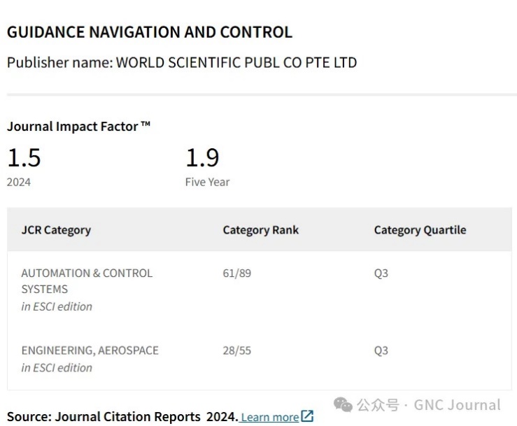 《制导、导航与控制(英文)》期刊获得最新影响因子!