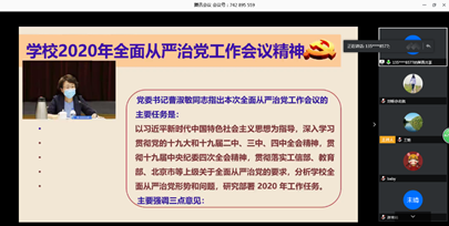 会议首先传达学校2020年全面从严治党工作会议精神,重点解读了党委书记曹淑敏的讲话精神,要深刻领会中央和上级全面从严治党新要求,要清醒认识学校全面从严治党存在的问题和不足,并扎实落实2020年全面从严治党各项工作。王少萍书记同时就2020年学校党建工作要点进行了宣讲,强调要一以贯之坚定不移推动全面从严治党向纵深发展,以高质量的党建推动学院和学校各项事业全面发展,为促进学院和学校“双一流”建设、打赢疫情防控阻击战提供坚强保障。