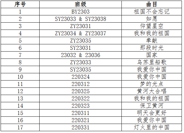 第四届驭远之声合唱比赛参赛班级及曲目表