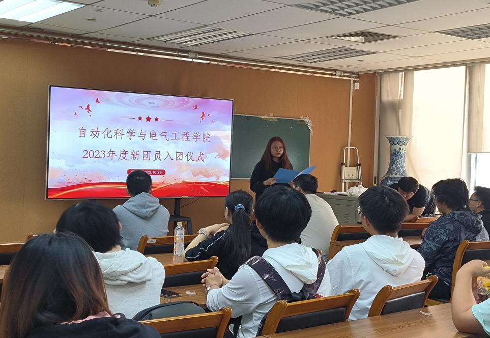 为深入学习贯彻党的二十大精神,深入学习习近平总书记关于青年工作的重要思想,进一步加强团组织建设,增强团组织的凝聚力和创造力激励新团员坚定理想信念,绽放青春力量,勇担时代重任,2023年10月29日下午,贝博艾弗森代言体育官网分团委举行2023年度新发展团员入团仪式。仪式主题为“青春心向党,奋进新征程”。自动化学院2021、2022级各支部团员代表、团组织部代表三十余人参加会议。学院分团委副书记王章玮到会指导。